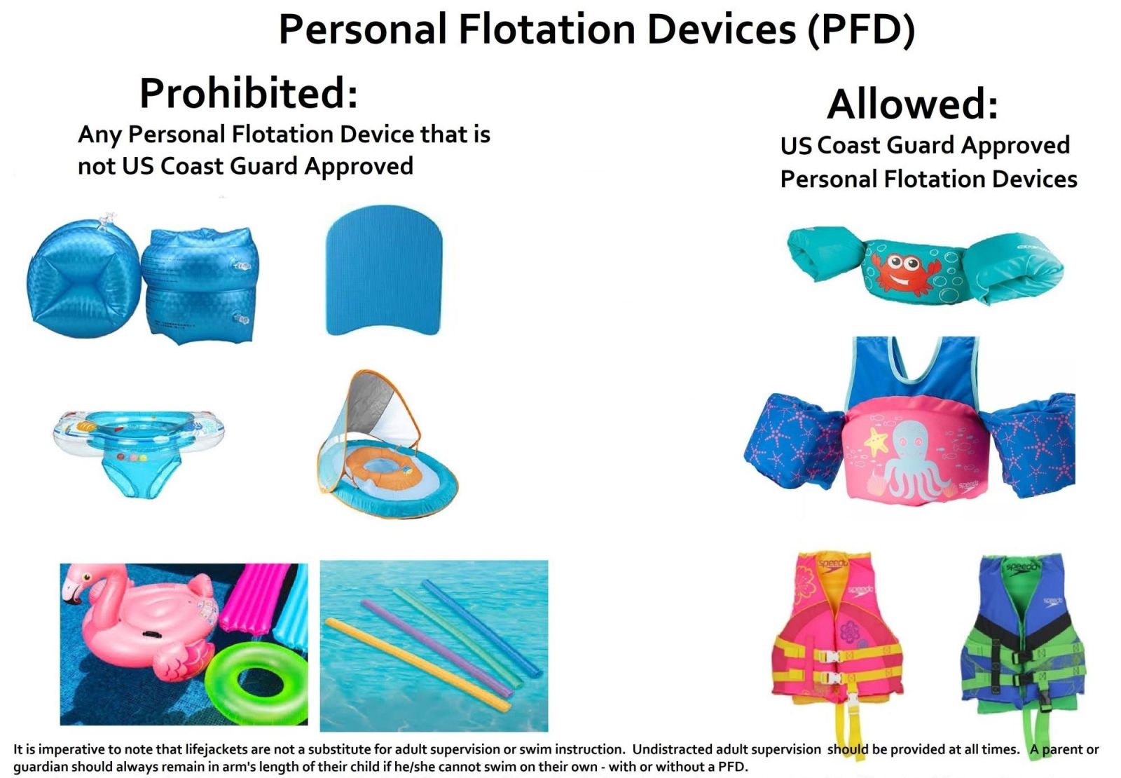 - Non-Coast Guard Approved Flotation Devices are prohibited in our pools