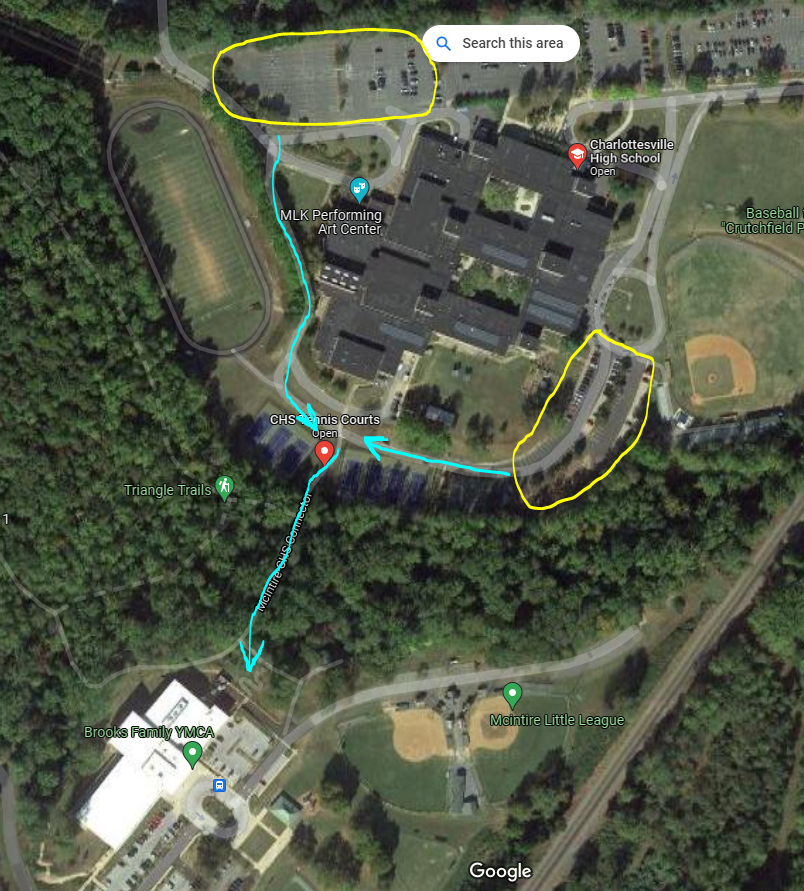 WHERE: Starting line @ Brooks Family YMCA, finish @ Charlottesville High School Track